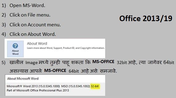 MS-OFFICE 64bit Install असल्यास PRE-TEST चे 64bit Software Download आणि Install करावे.